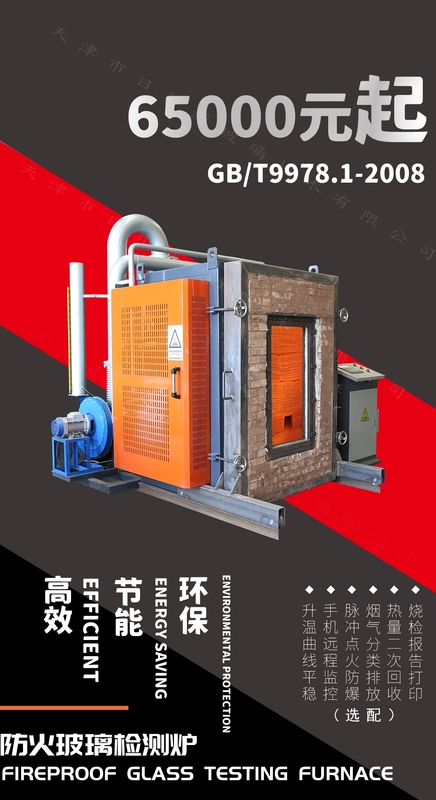 本烧检炉专门用于防火玻璃的烧检,可烧检单片非隔热玻璃、复合防火玻璃、中空玻璃、门窗玻璃等。严格按照国家9978.1-2008标准制作,满足自检、第三方检测、官方检测要求;满足国标规定时间、规定温度的平稳升温曲线要求;满足国标初始燃烧及稳定燃烧的气压范围要求;针对不同要求增加外部测温点、排烟除尘系统、数据拷贝、远程APP、上位机等。可使用天然气、液化石油气、柴油等。超过国标要求标准,新增安全点火控制,新增热量回收系统,可节约38%的热能。设备有5种安全保护模式,火焰监测装置等。